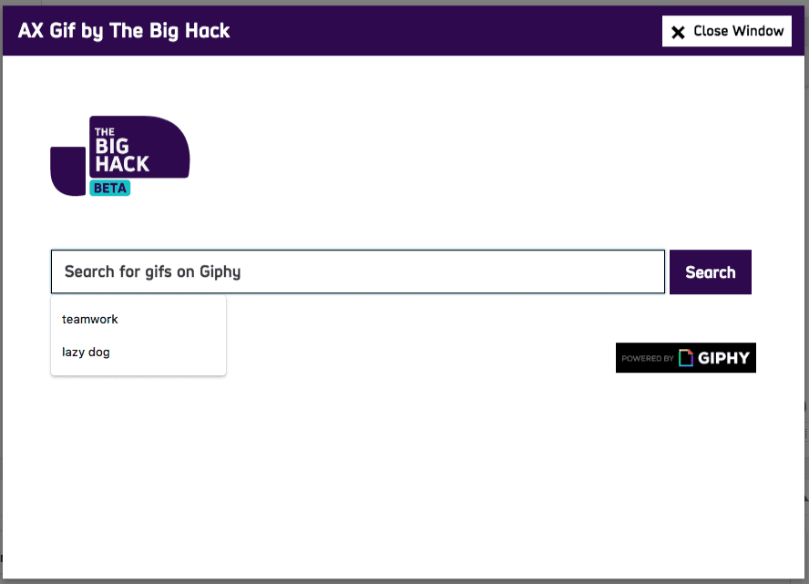 - A window should open that allows you to search GIPHY as you normally would.