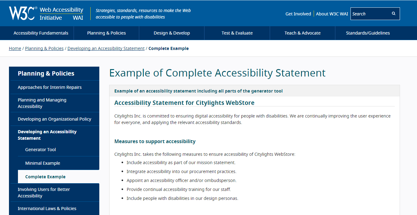 Example of Complete Accessibility Statement (W3C)