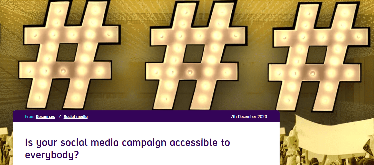 Scope for Business resource hub has a social media series. This looks at some easy steps to make your social media campaigns and posts more accessible.