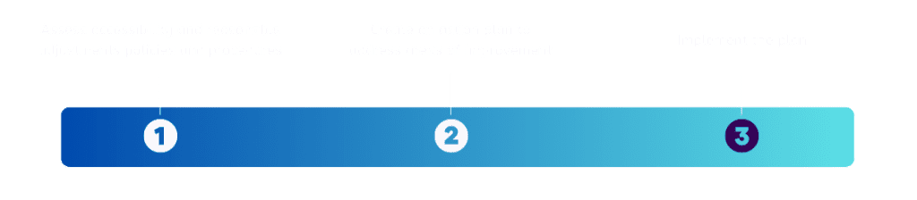 - Step 1: Assess accessibility and reasonable adjustments policies and procedures.